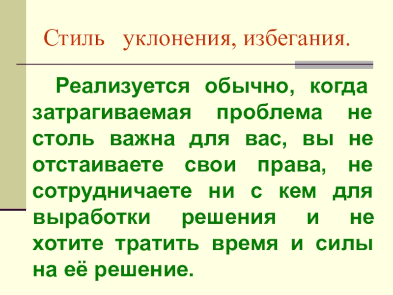 не столь важна для вас, вы не отстаиваете свои права, не сотрудничаете ни с кем для выработки решения и не хотите тратить время и силы на её решение.