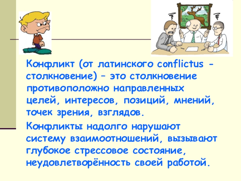 Слайд 3Конфликт (от латинского conflictus - столкновение) – это столкновение противоположно направленных
