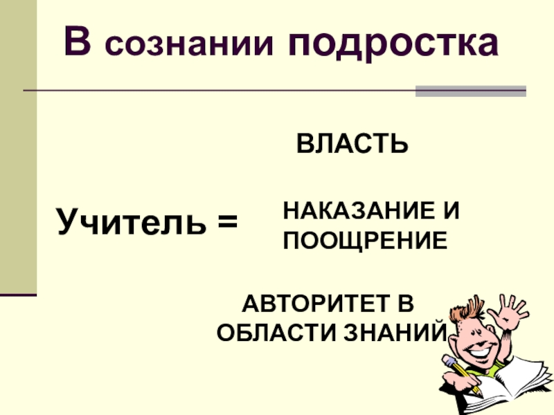 ♦ Участники конфликтов имеют различный социальный статус (учитель, ученик), чем и определяется их разное поведение в конфликте.
