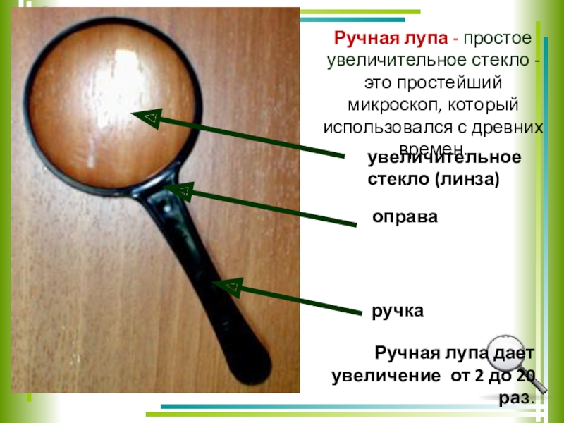 Ручная лупа дает увеличение от 2 до 20 раз.