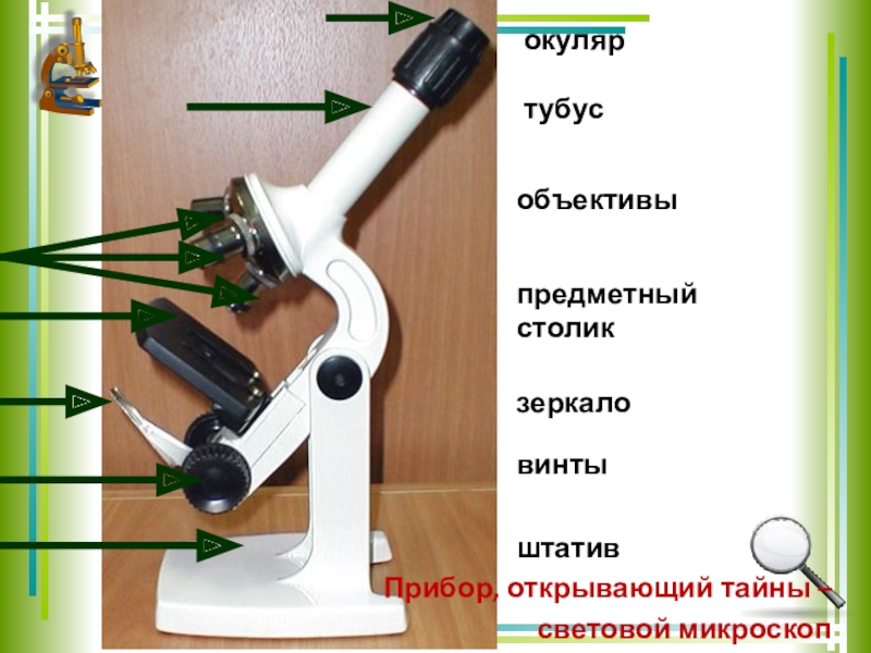 Но все части микроскопа имеют своё название.