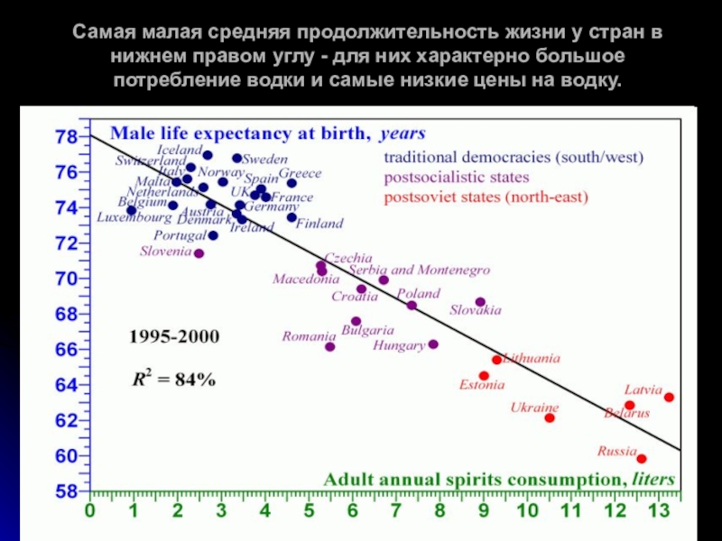 Слайд 57Злоупотребление алкоголем и продолжительность жизни