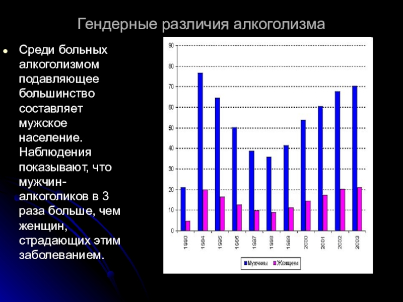 Слайд 20Гендерные различия алкоголизма