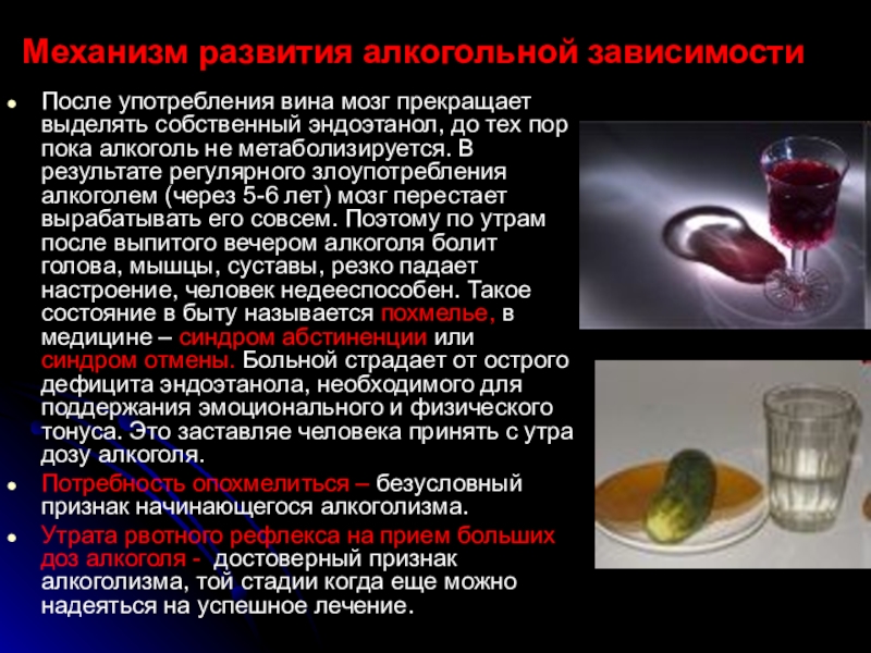 Слайд 25Механизм развития алкогольной зависимости