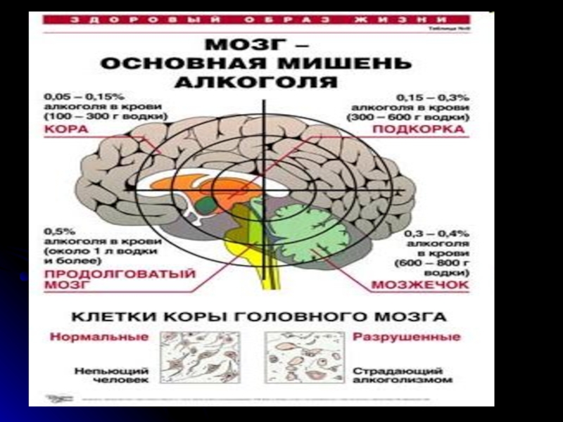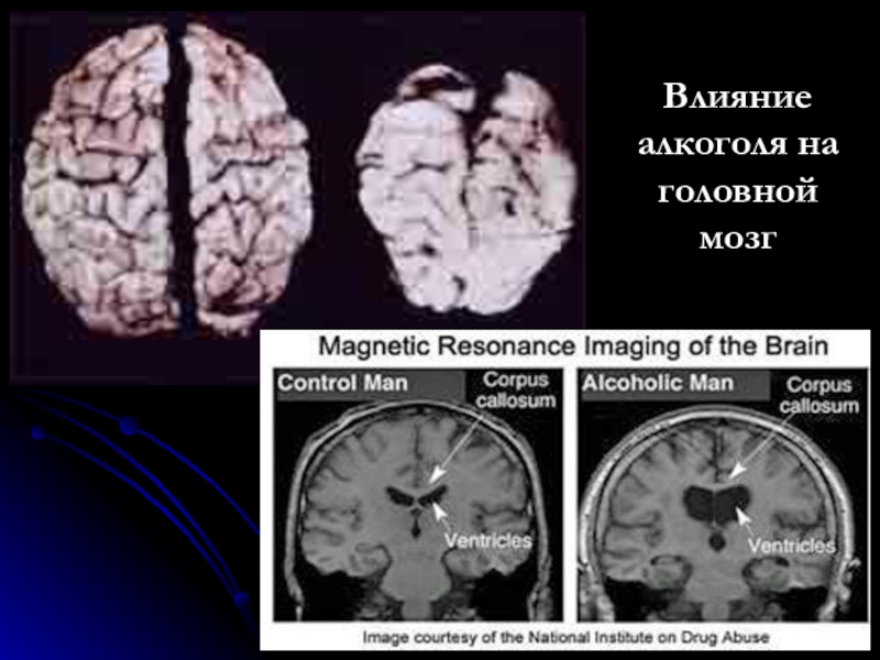 Слайд 32Влияние алкоголя на головной мозг