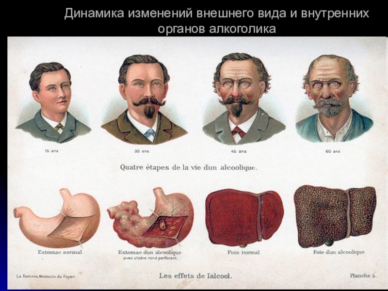 Слайд 29Динамика изменений внешнего вида и внутренних органов алкоголика