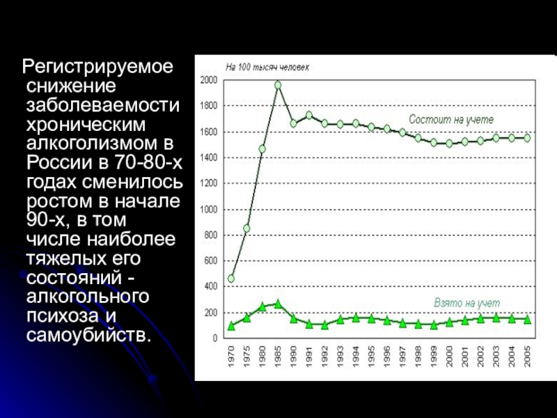 Регистрируемое снижение заболеваемости хроническим алкоголизмом в России в 70-80-х