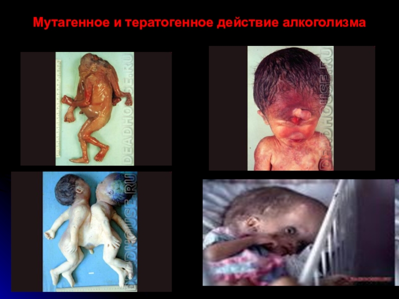 Слайд 41Мутагенное и тератогенное действие алкоголизма