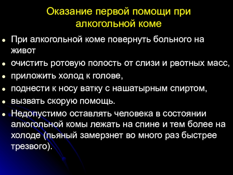 Слайд 52Оказание первой помощи при алкогольной коме