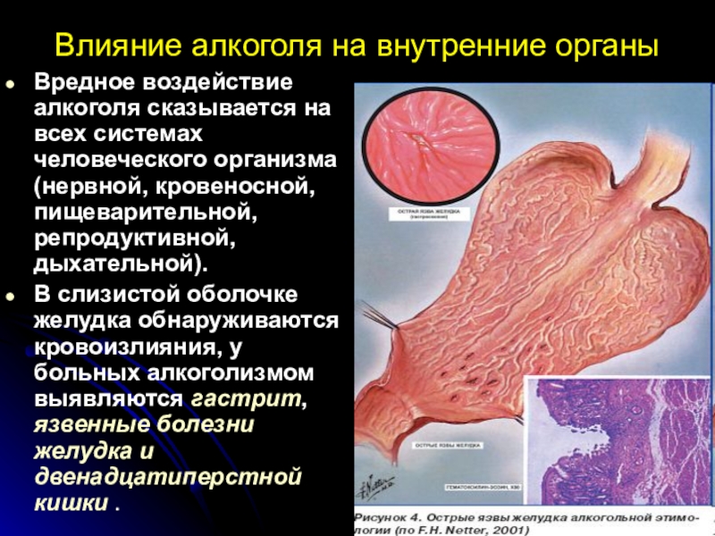 Слайд 33Влияние алкоголя на внутренние органы