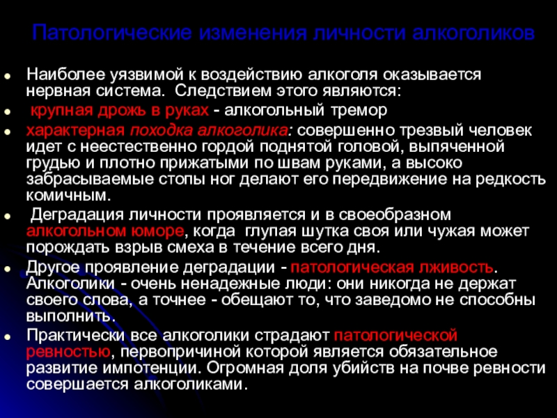 Слайд 28Патологические изменения личности алкоголиков