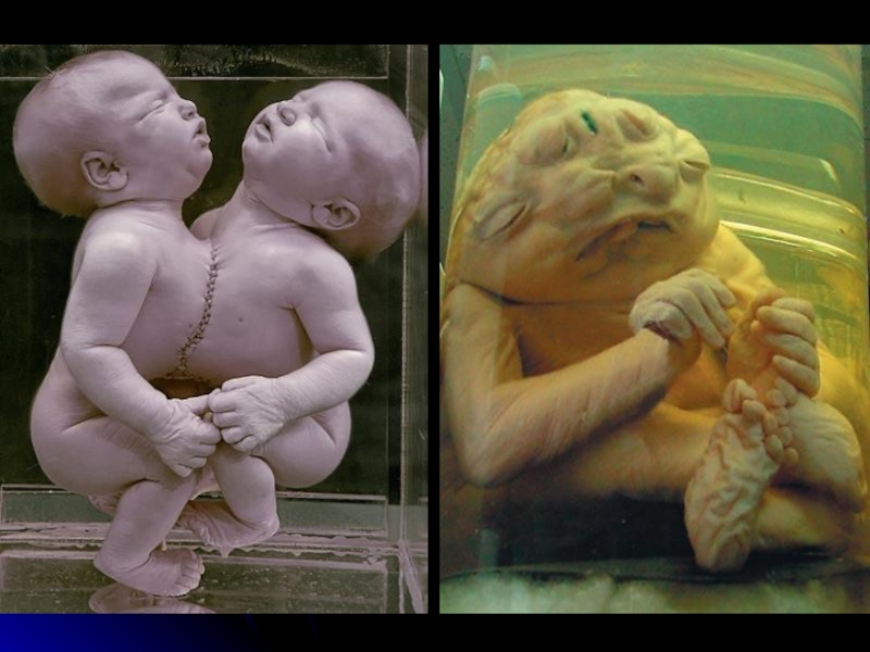 Слайд 42Ребенок родился недоношенным, с "волчьей пастью" (нёбо рта растёт наружу), "заячьей