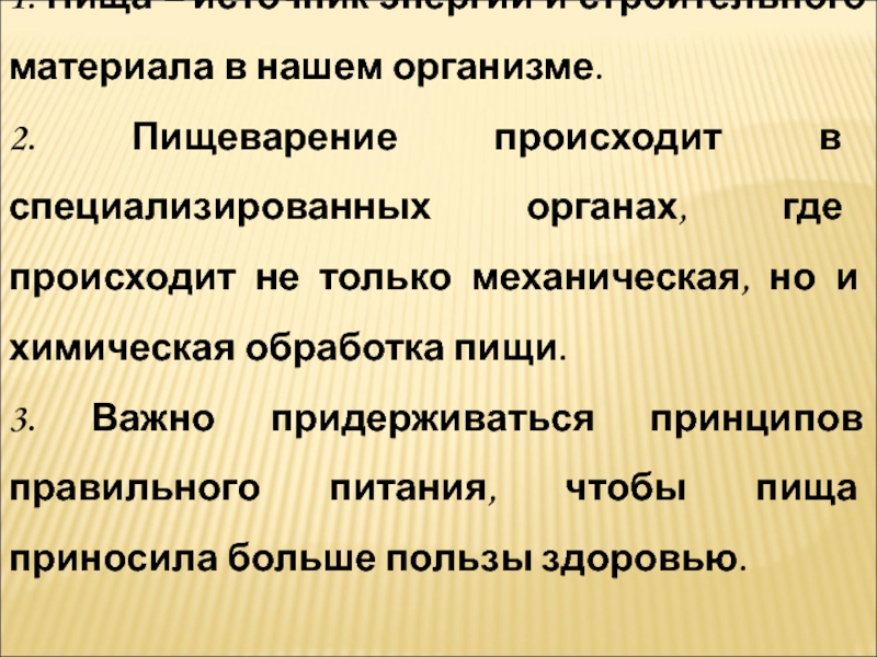 Слайд 291. Пища – источник энергии и строительного материала в нашем организме.
