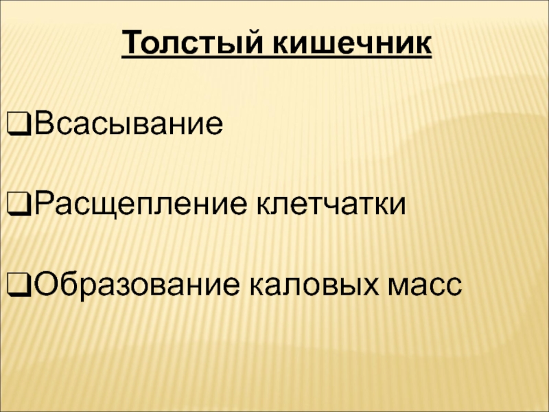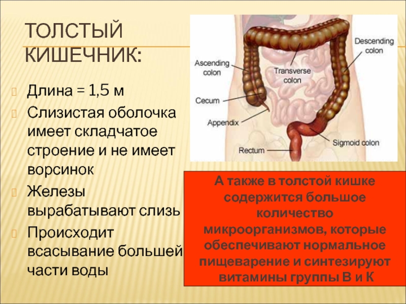 Слайд 22ТОЛСТЫЙ КИШЕЧНИК: