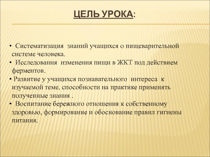 Систематизация знаний учащихся о пищеварительной системе человека.