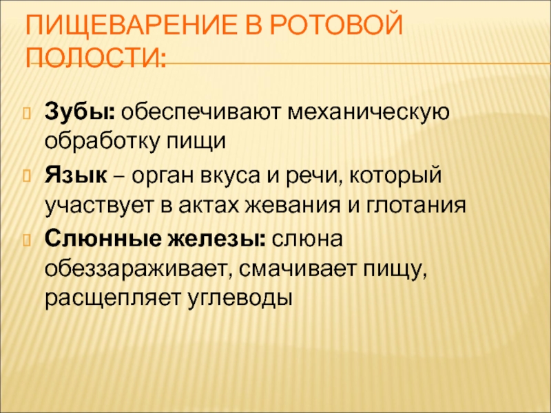 Слайд 7ПИЩЕВАРЕНИЕ В РОТОВОЙ ПОЛОСТИ: