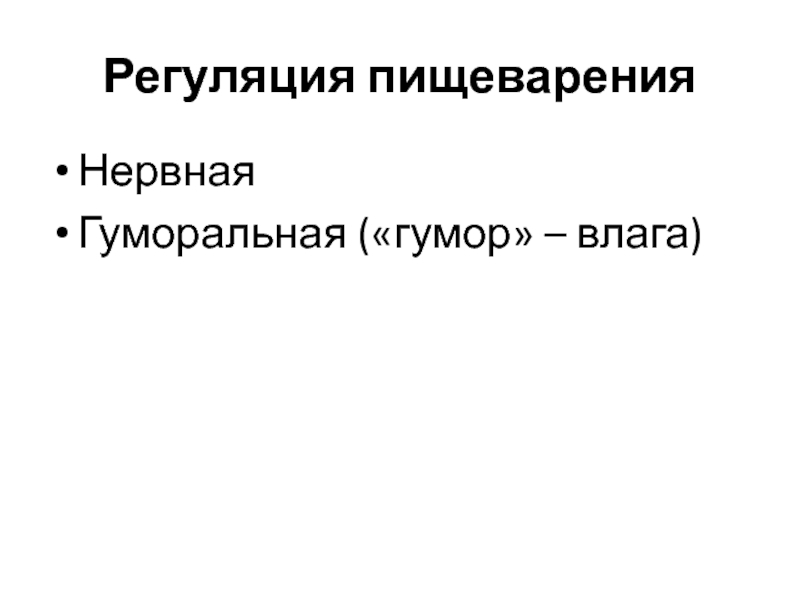Регуляция пищеваренияНервнаяГуморальная («гумор» – влага)