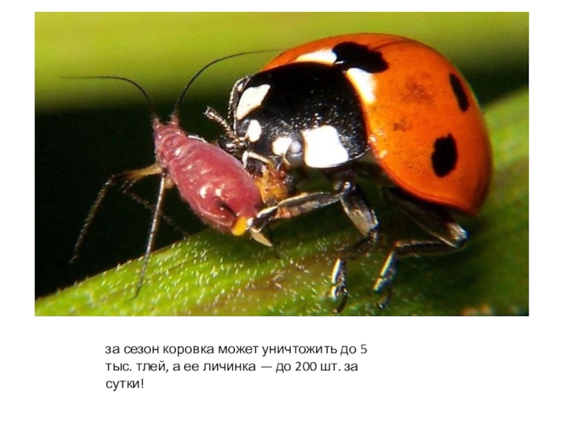 Слайд 6за сезон коровка может уничтожить до 5 тыс. тлей, а ее