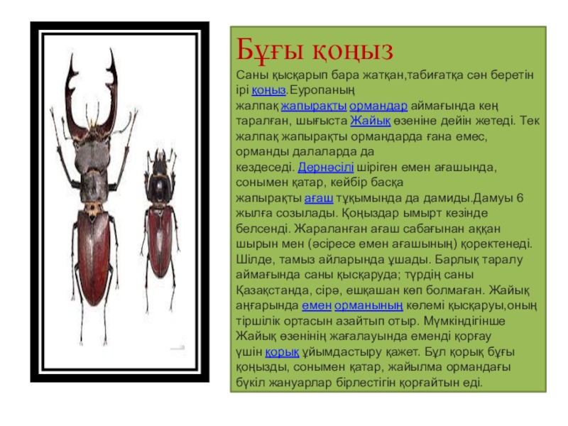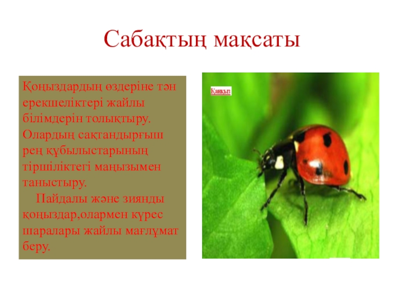 Пайдалы және зиянды қоңыздар,олармен күрес шаралары жайлы мағлұмат беру.