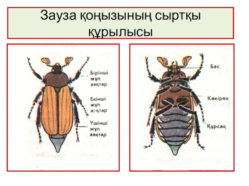 Слайд 4Зауза қоңызының сыртқы құрылысы
