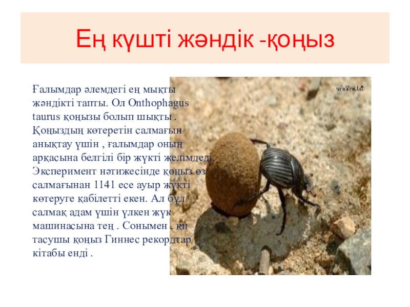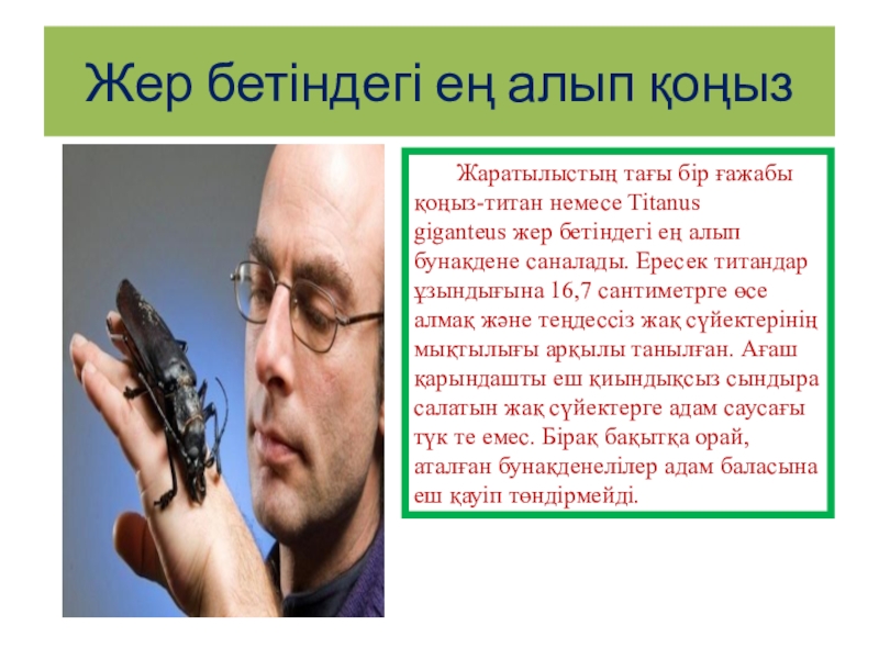 Слайд 9Жер бетіндегі ең алып қоңыз