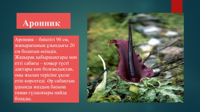 Аронник – биіктігі 90 см, жапырағының ұзындығы 20 см болатын