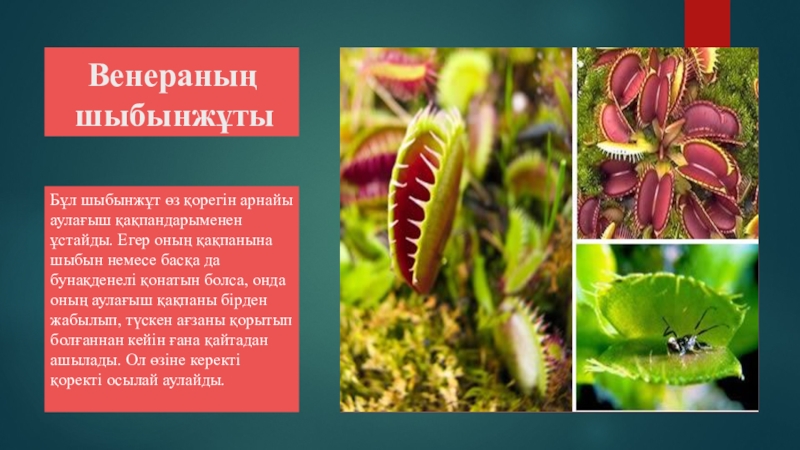 ұстайды. Егер оның қақпанына шыбын немесе басқа да бунақденелі қонатын болса, онда оның аулағыш қақпаны бірден жабылып, түскен ағзаны қорытып болғаннан кейін ғана қайтадан ашылады. Ол өзіне керекті қоректі осылай аулайды.