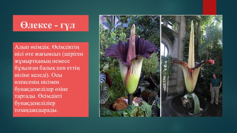 Алып өсімдік. Өсімдіктің иісі өте жағымсыз (шіріген жұмыртқаның