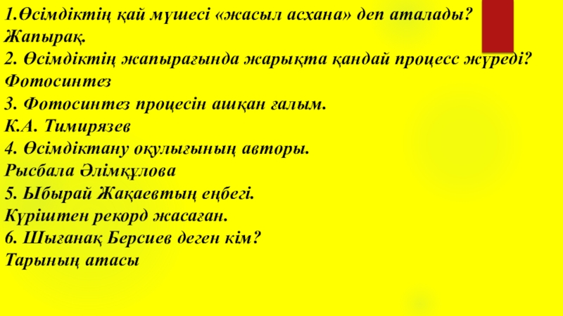 Слайд 51.Өсімдіктің қай мүшесі «жасыл асхана» деп аталады?