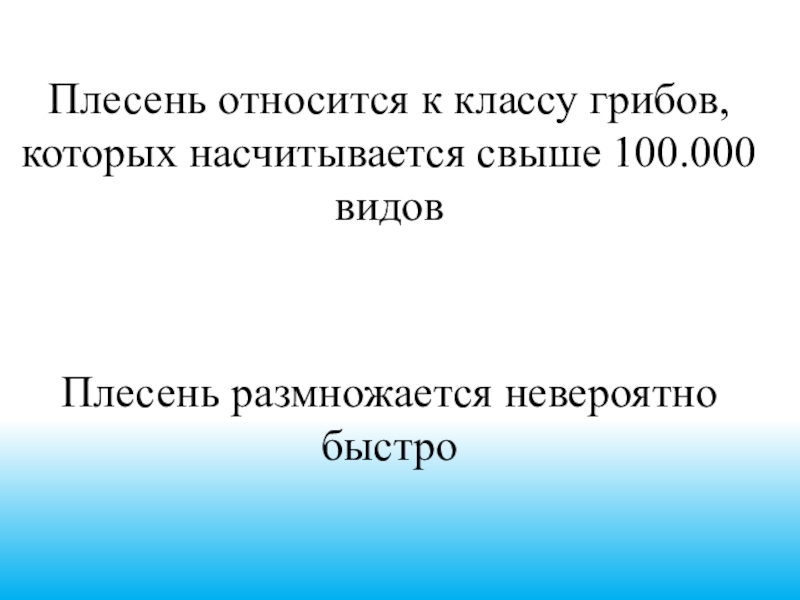 Слайд 6Плесень относится к классу грибов, которых насчитывается свыше 100.000 видов