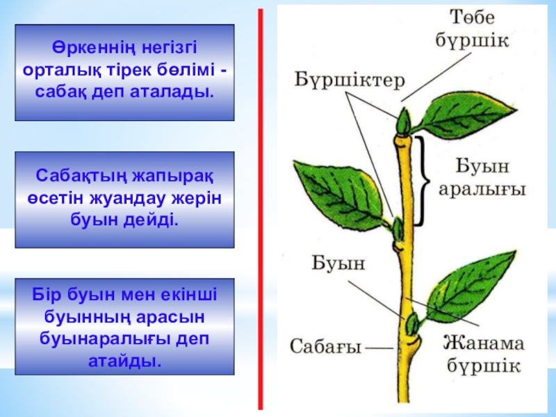 Слайд 9Жапырағы мен бүршігі бар бұтақтанбаған жас сабақты өркен дейді.