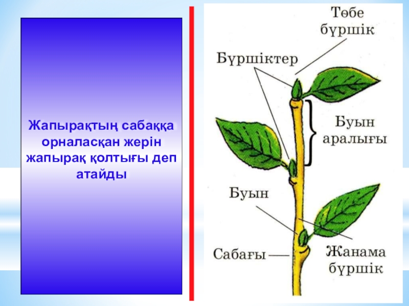 жапырақ орналасқан бөлігі...................деп аталады.