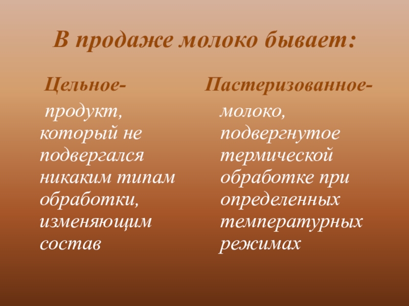 молоко, подвергнутое термической обработке при определенных температурных режимах