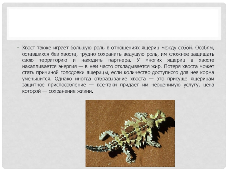 Слайд 7Хвост также играет большую роль в отношениях ящериц между собой. Особям,