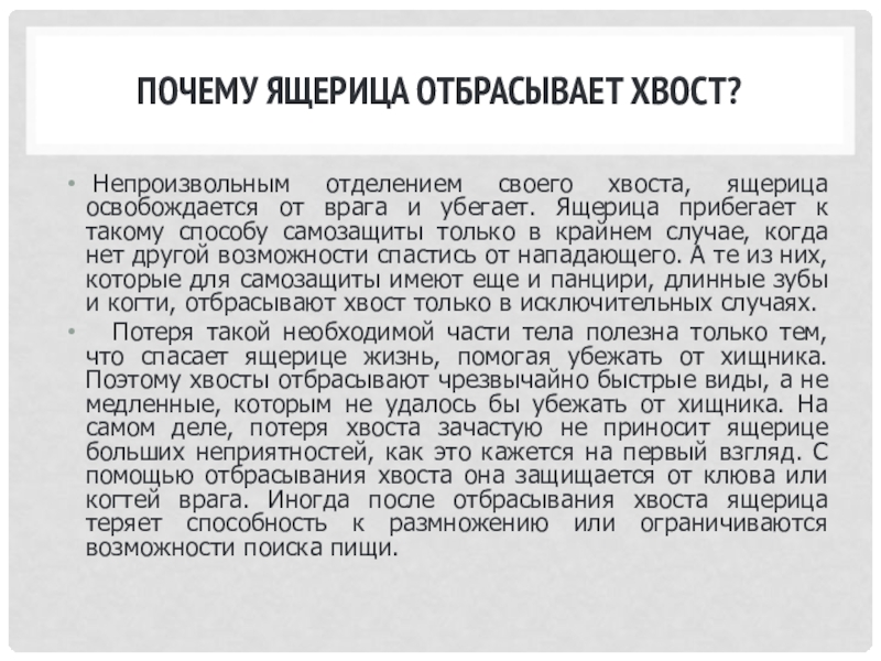Слайд 1Почему ящерица отбрасывает хвост?