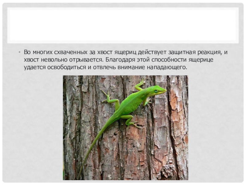 Слайд 2Во многих схваченных за хвост ящериц действует защитная реакция, и хвост