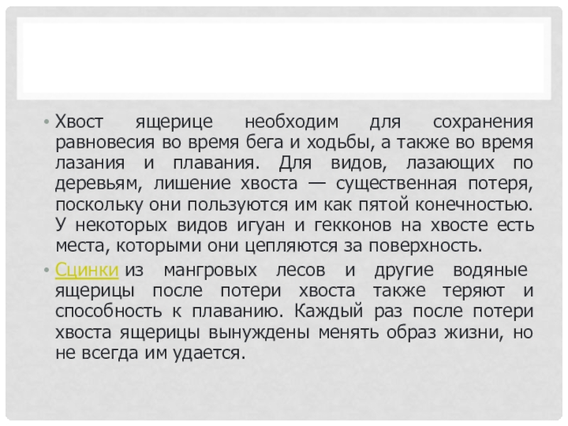 Слайд 5Хвост ящерице необходим для сохранения равновесия во время бега и ходьбы,