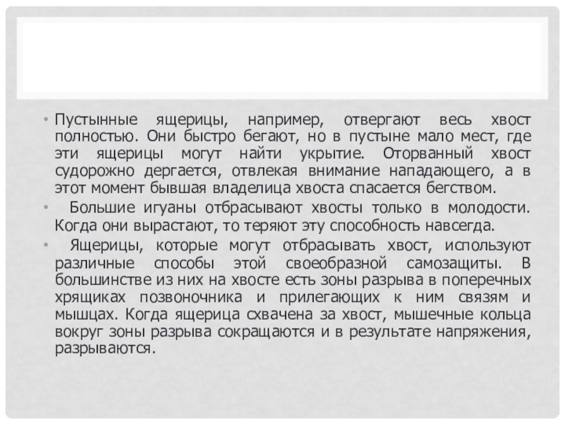 Слайд 9Пустынные ящерицы, например, отвергают весь хвост полностью. Они быстро бегают, но