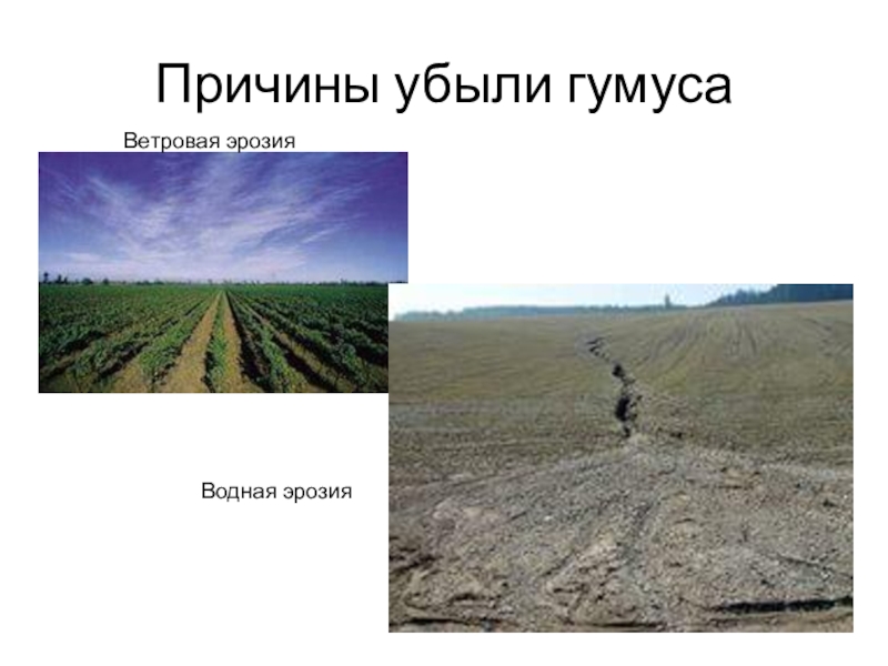 Причины убыли гумусаВетровая эрозияВодная эрозия