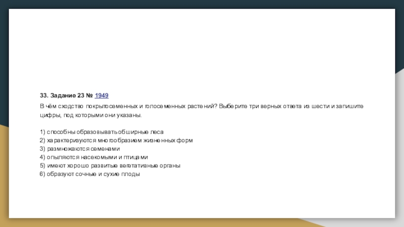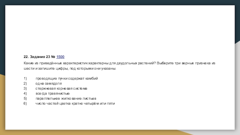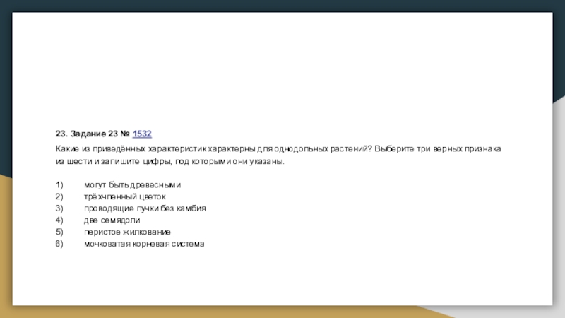 растений? Выберите три верных признака из шести и запишите цифры, под которыми они указаны.