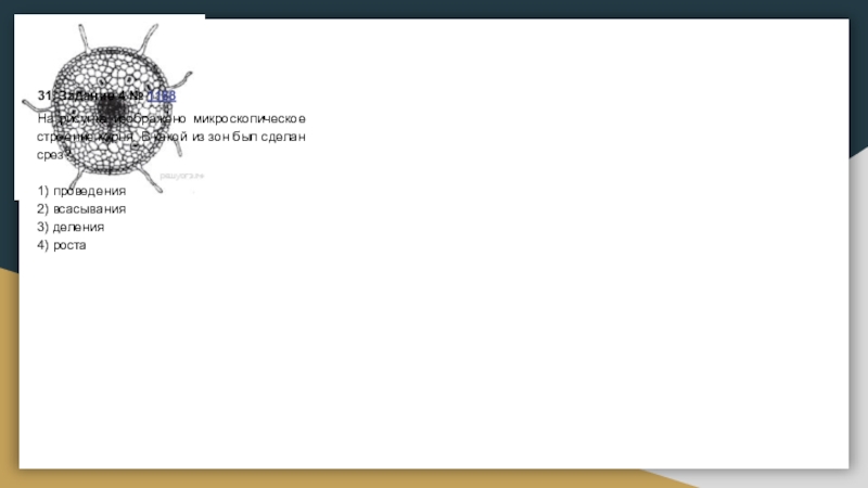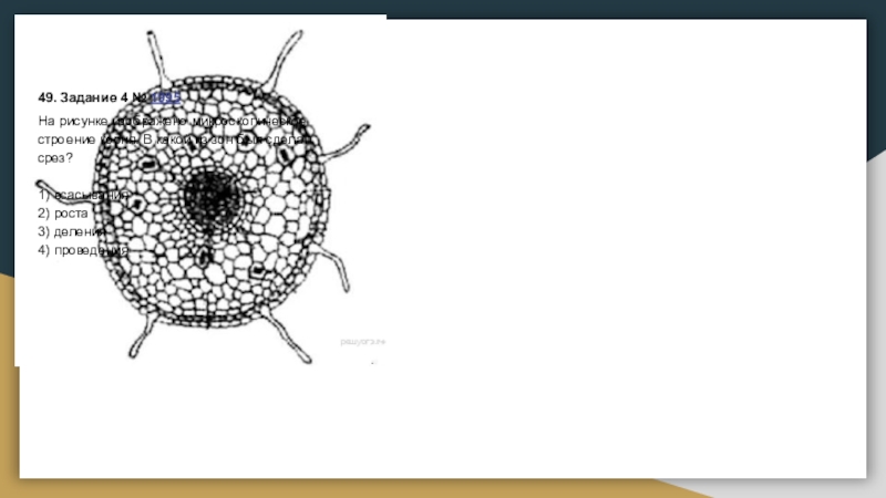Рассмотрите внутреннее строение корня. Какой цифрой на