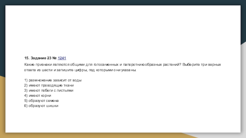 папоротникообразных растений? Выберите три верных ответа из шести и запишите цифры, под которыми они указаны.