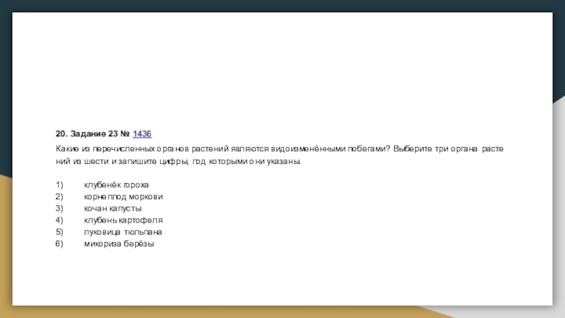 побегами? Выберите три органа растений из шести и запишите цифры, под которыми они указаны.