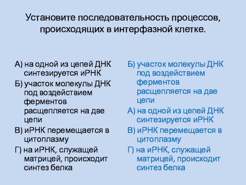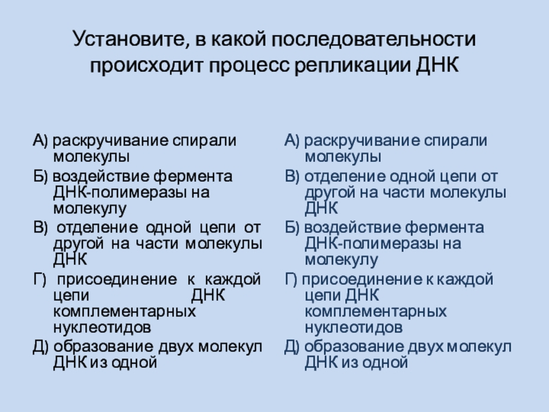 Слайд 63Установите, в какой последовательности происходит процесс репликации ДНК