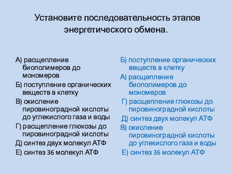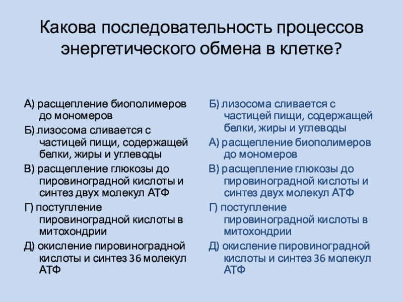 Слайд 9Какова последовательность процессов энергетического обмена в клетке?