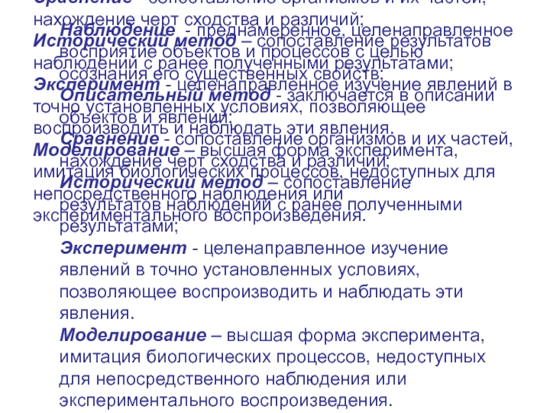 Сравнение - сопоставление организмов и их частей, нахождение черт сходства и различий;
