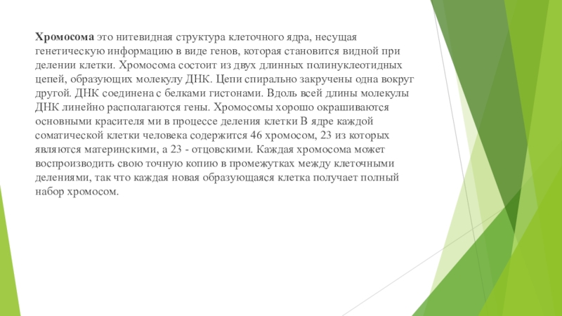 Слайд 6Хромосома это нитевидная структура клеточного ядра, несущая генетическую информацию в виде