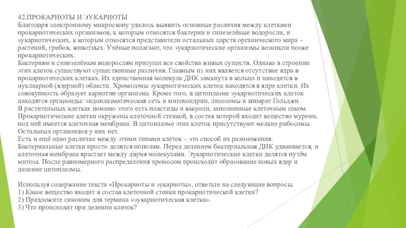 Используя содержание текста «Прокариоты и эукариоты», ответьте на следующие вопросы.