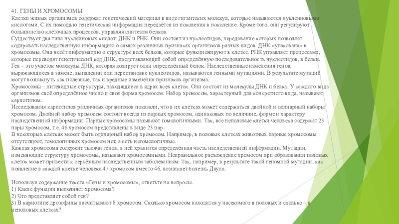 Используя содержание текста «Гены и хромосомы», ответьте на вопросы.