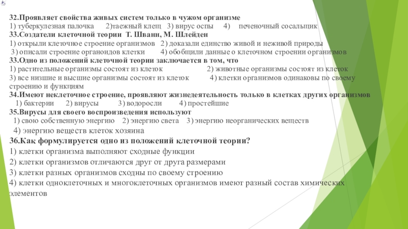 1) вирусы – наименьшие клеточные организмы, обитающие на Земле